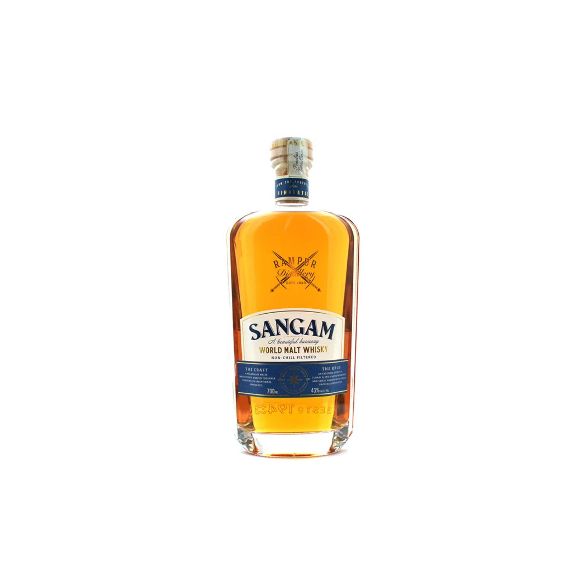 Sangam World Malt is a proud product of Radico Khaitan, one of India’s oldest and most respected spirits producers. The whisky is distilled at the legendary Rampur Distillery in Uttar Pradesh, a facility with a rich legacy dating back to 1943. Drawing inspiration from its surroundings, Sangam World Malt is crafted using indigenous six-row Indian barley and pure Himalayan spring water. Sangam, meaning ‘confluence’ in Hindi, reflects the fact that this release is a blend of different whiskies from around the world, including its own Indian single malt.